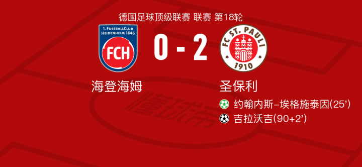 海登海姆与圣保利比赛球员表现一览